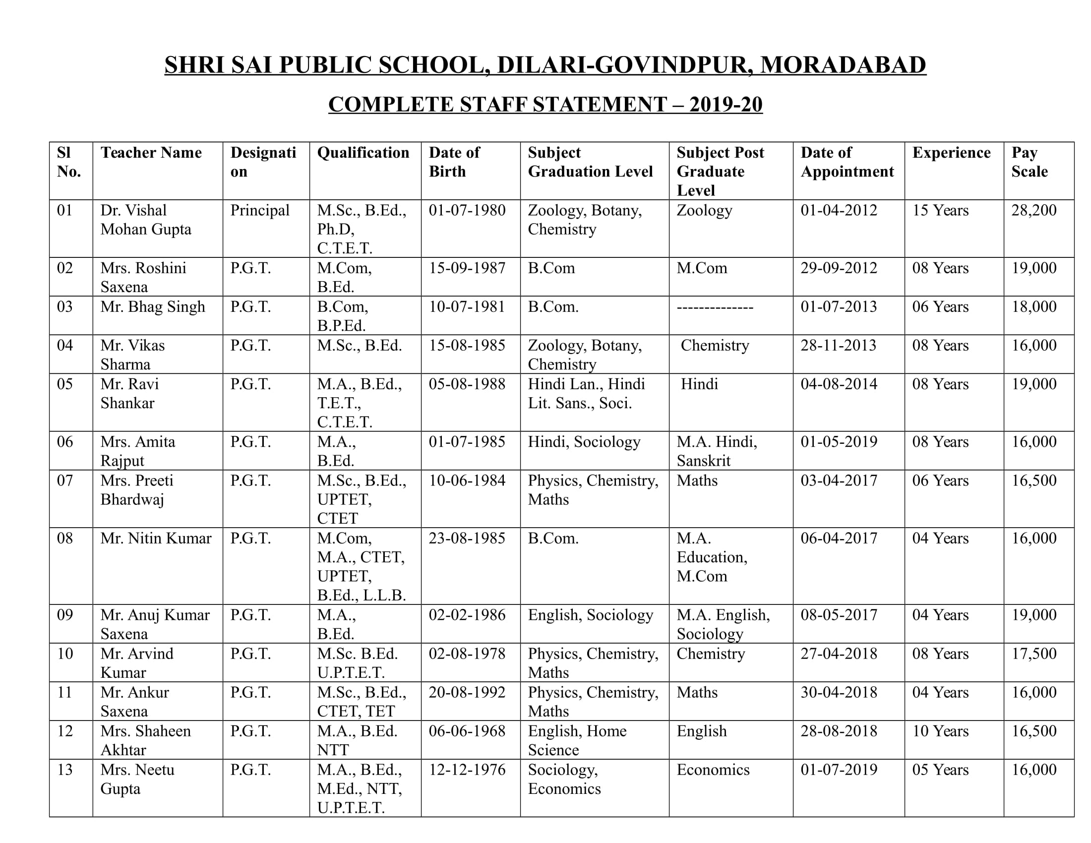 Not with standing the entire infrastructure available, a school is ultimately only as good as its teachers. On this point too,Shri Sai Public School scores highly. Each faculty member has had an excellent academic career coupled with professional training in teaching, besides adequate work experience in some of the top schools of India. The teachers stay on campus, which ensures their accessibility even during late hours at the time of examinations. As far as the academic curriculum goes, Shri Sai Public School follows the CBSE syllabus for all its classes from I to XII. All the three streams science, commerce and humanities are offered at Shri Sai Public School .