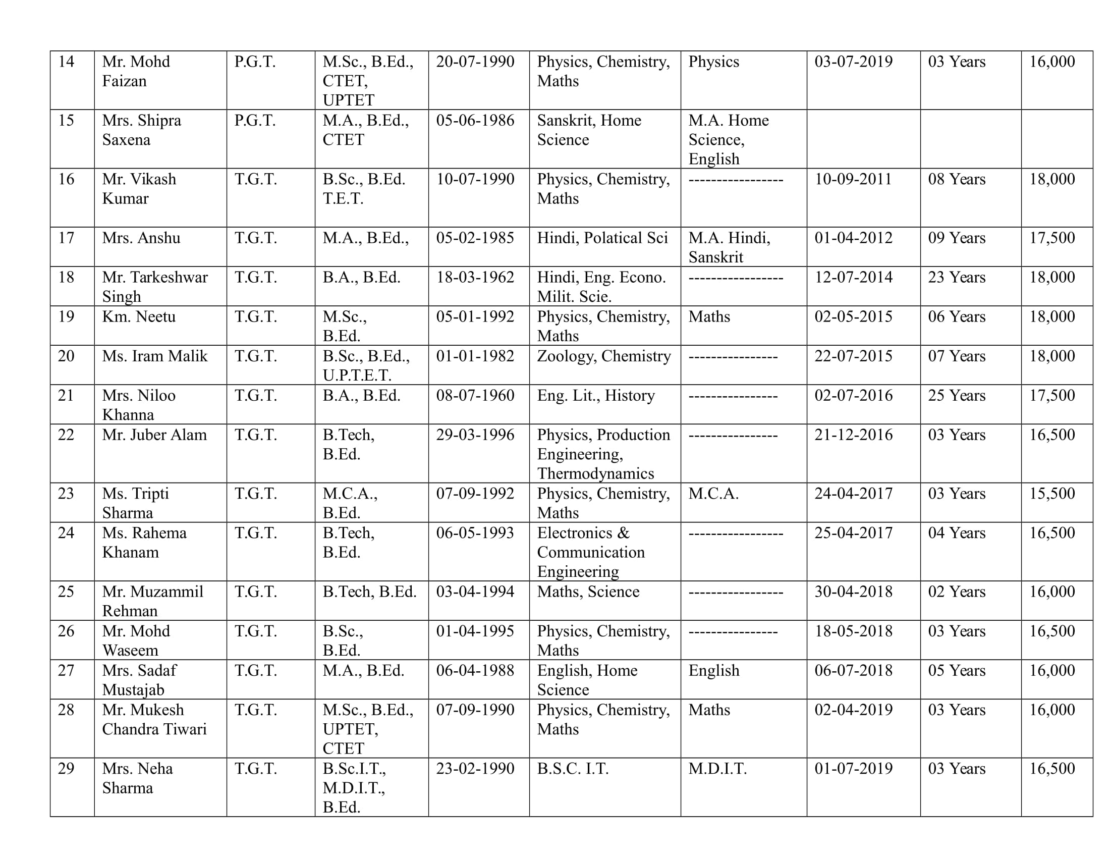 In order to acccelerate and to maintain the high quality and standard education, the school has manged to add well experienced highly qualified and dedicated teachers so that the chid can develop multimensional personality.